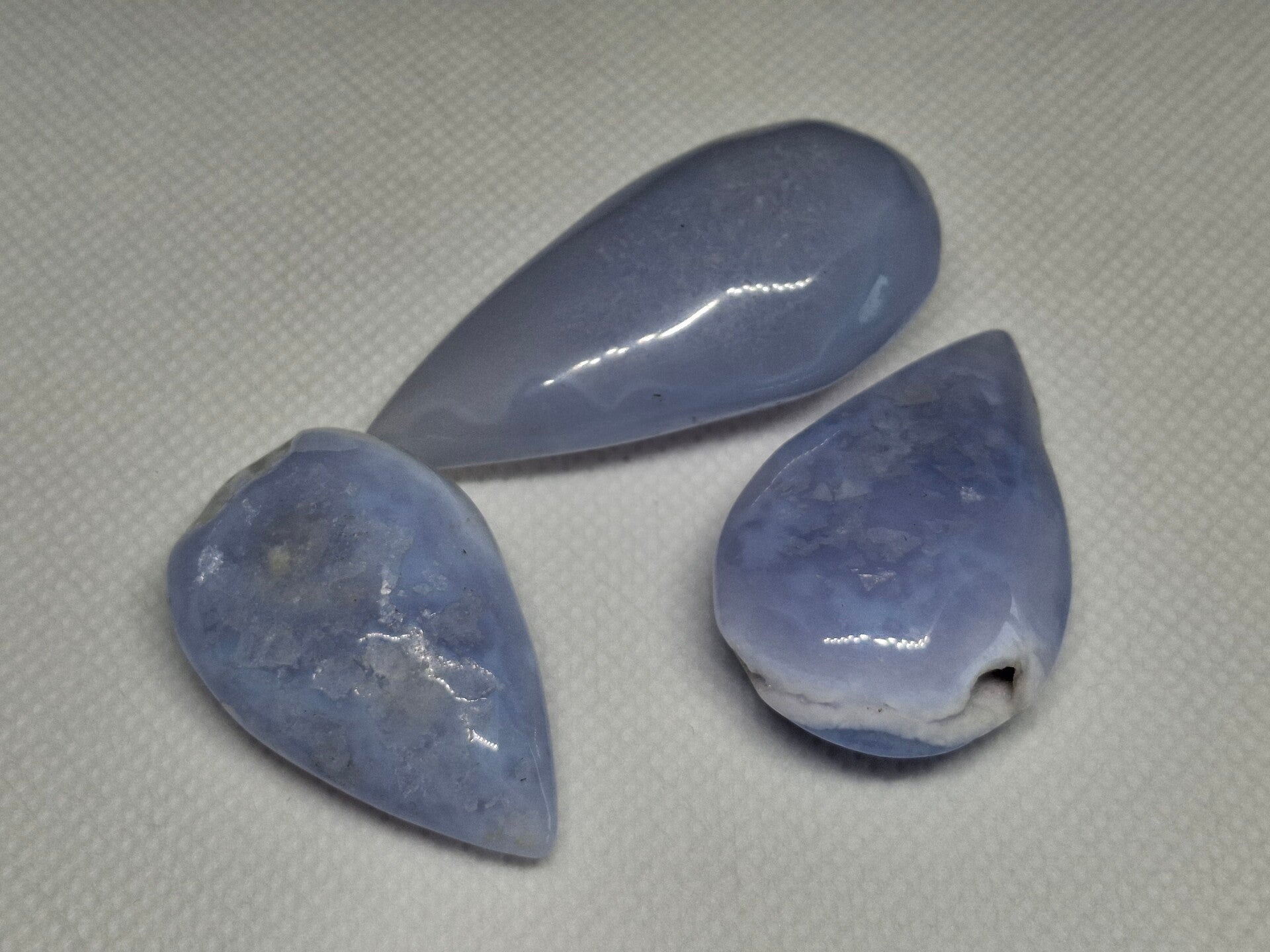 Blauwe chalcedoon/ blue lace druppel of hart
